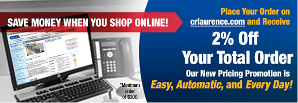 Our 2% online ordering discount is available every day. It's not a limited time offer, but a continuous one! It's our way of rewarding those of you who place orders on crlaurence.com. The web site contains our catalog of product offerings, which will be a valuable resource during your shopping experience.